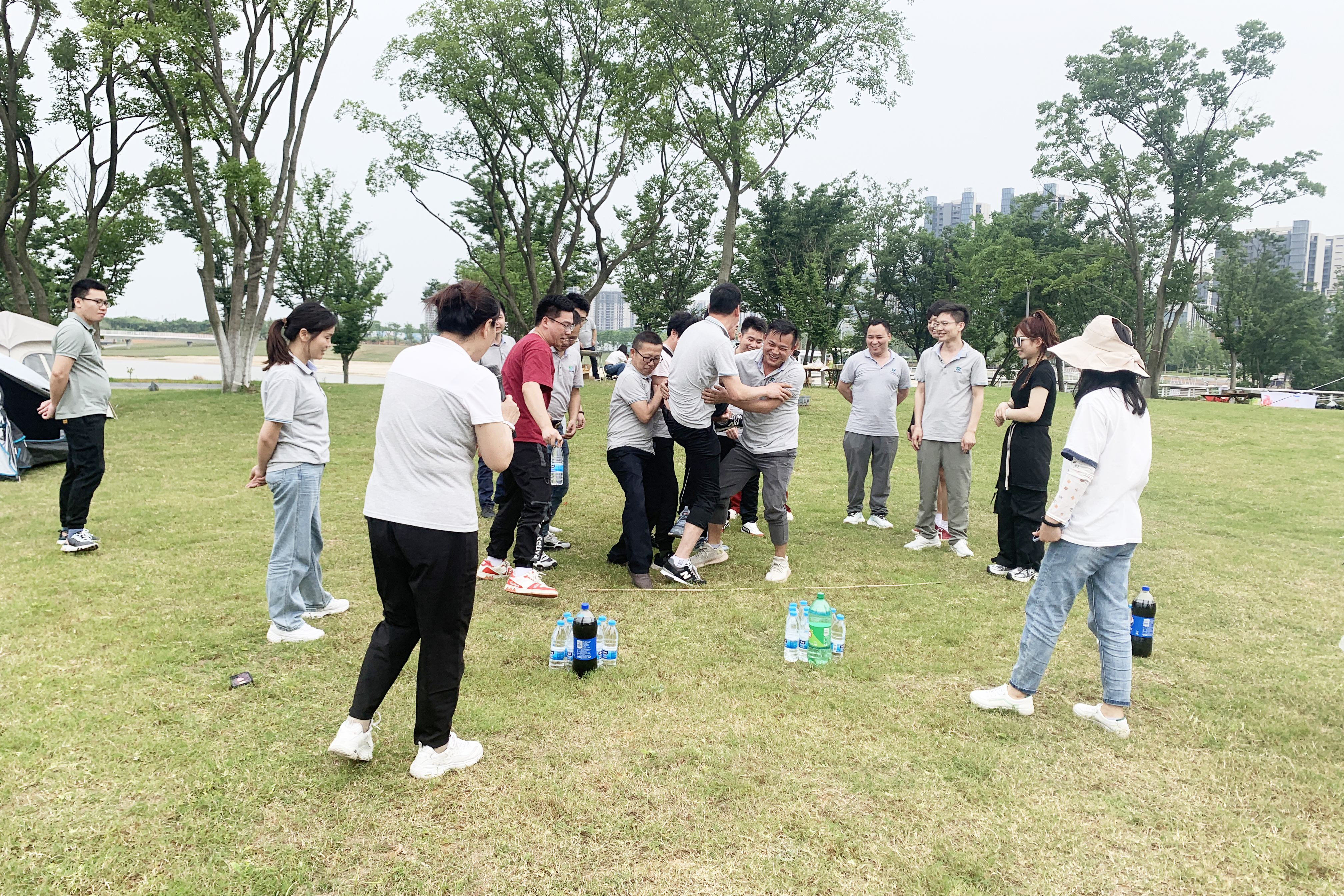 在团队合作的默契配合下,我们一起克服重重困难,相信同事,成功取到指定位置的水瓶。